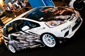 Soal modifikasi sepedamotor, Jawa Timur jangan dilawan deh. Pemodifikatornya berani merombak ekstrem. Tengok Yamaha Mio produksi 2002 dan 2007 milik M.Irfan dan Andi Widiatmoko, yang keduanya asal Jember, Jawa Timur ini. Kedua skuter bebek (skubek) itu sama-sama menganut aliran West Custom, sehingga ada bagian tertentu memiliki kesamaan.Seperti pada bagian depan, kata Irfan, kedua skubek menggunakan lampu Yamaha Nouvo-Z. “Tadinya sempat terpikirkan pakai lampu Mio Soul. Tapi, karena harus inden lama, akhirnya pakai Nouvo,” lanjut lajang 23 tahun ini. Kemudian, untuk roda depan sama-sama mengadopsi pelek orbital, yang banyak digandrungi penggila modifikasi di Jatim. Yang membedakan, ukurannya saja. Bila Irfan pilih 14 inci, Andi yang 17 inci. Kini, kita intip perbedaannya. Kekuatan yang ingin ditonjolkan Irfan berupa pemindahan peredam kejut belakang bergeser ke tengah di atas dek. Sokbrekernya sendiri sudah diganti dengan milik Supra yang disambung dengan pipa besi. Posisi sokbreker baru ini benar-benar menjadi daya pikat dan banyak orang yang nggak ngeh kalau itu sok belakang. “Malah banyak yang bertanya berfungsi apa tidak sok itu,”kekeh Irfan.Sementara Mio milik Andi memiliki keunikan pada roda belakang. Ia memilih pelek mobil ukuran 15 inci keluaran BBS. Jelas, ketika merayap di jalanan sangat menguras tenaga. Kreasi fenomenal lainnya dari motor Andi ada pada sistem penggerak roda belakang. Tidak hanya mengandalkan CVT, namun sudah ditambah dengan memakai rantai. “Itu karena konstruksi pelek dan jaraknya yang enggak mungkin pakai belt,” papar Andi. Jadi, pakai gir dengan perbandingan gigi yang sama 14:14. ![]() Cara kerjanya, tenaga dari CVT menggerakkan gir depan yang kemudian diteruskan oleh rantai sebagai penggerak gir belakang dan as roda. Agar tampilan belakang sedikit sangat, penghenti laju memakai disc brake, juga lengan ayundengan model flame.Selain pemakaian ban belakang, rancangan buritan juga beda. Meski sama-sama model tunggangan MotoGP, namun buntut Mio punya Irfan lebih memanjang, sedang Andi membulat ke atas. Yang pasti, kedua Mio dari Jember ini mengundang kagum. (Nurfil) |